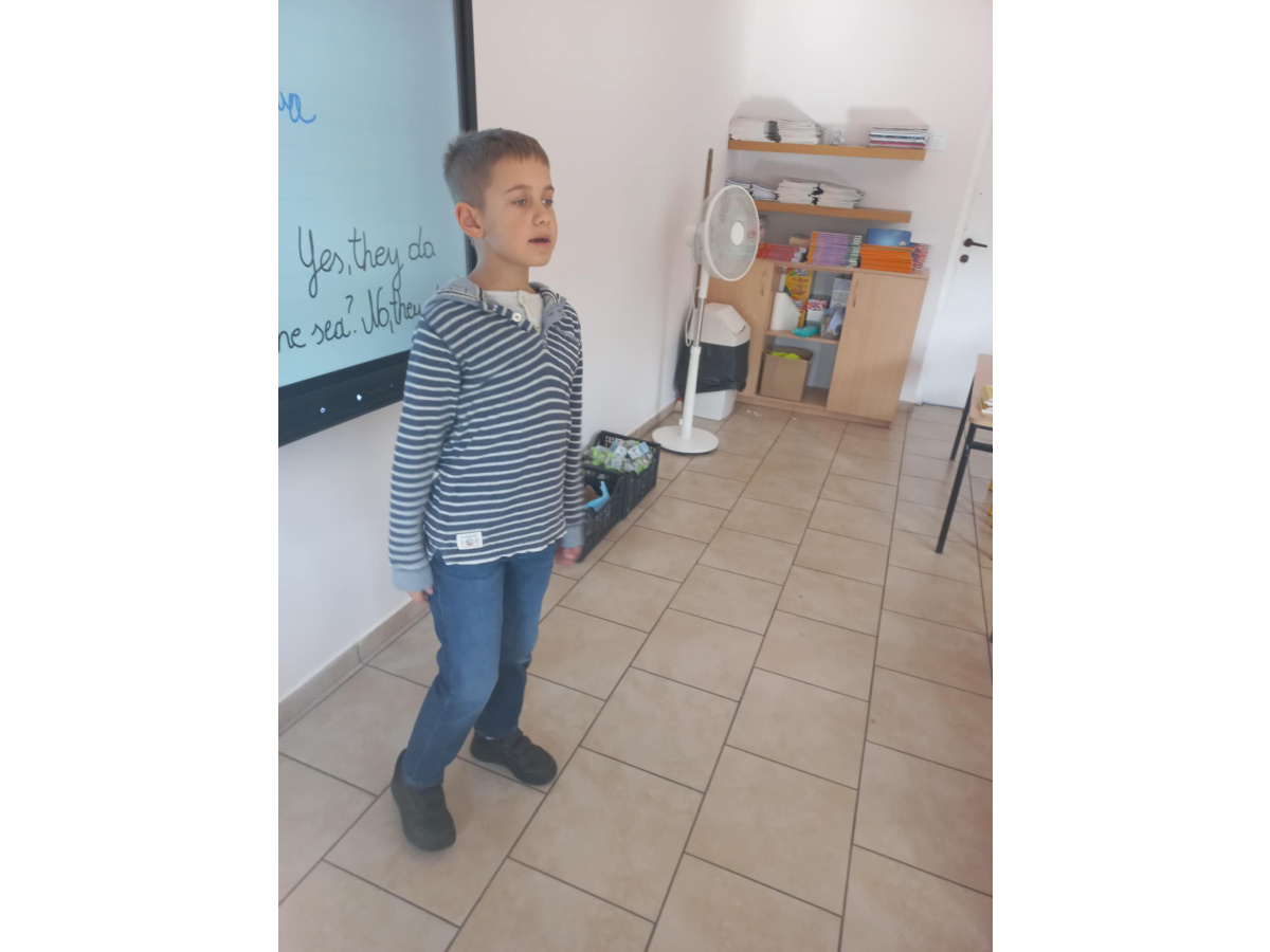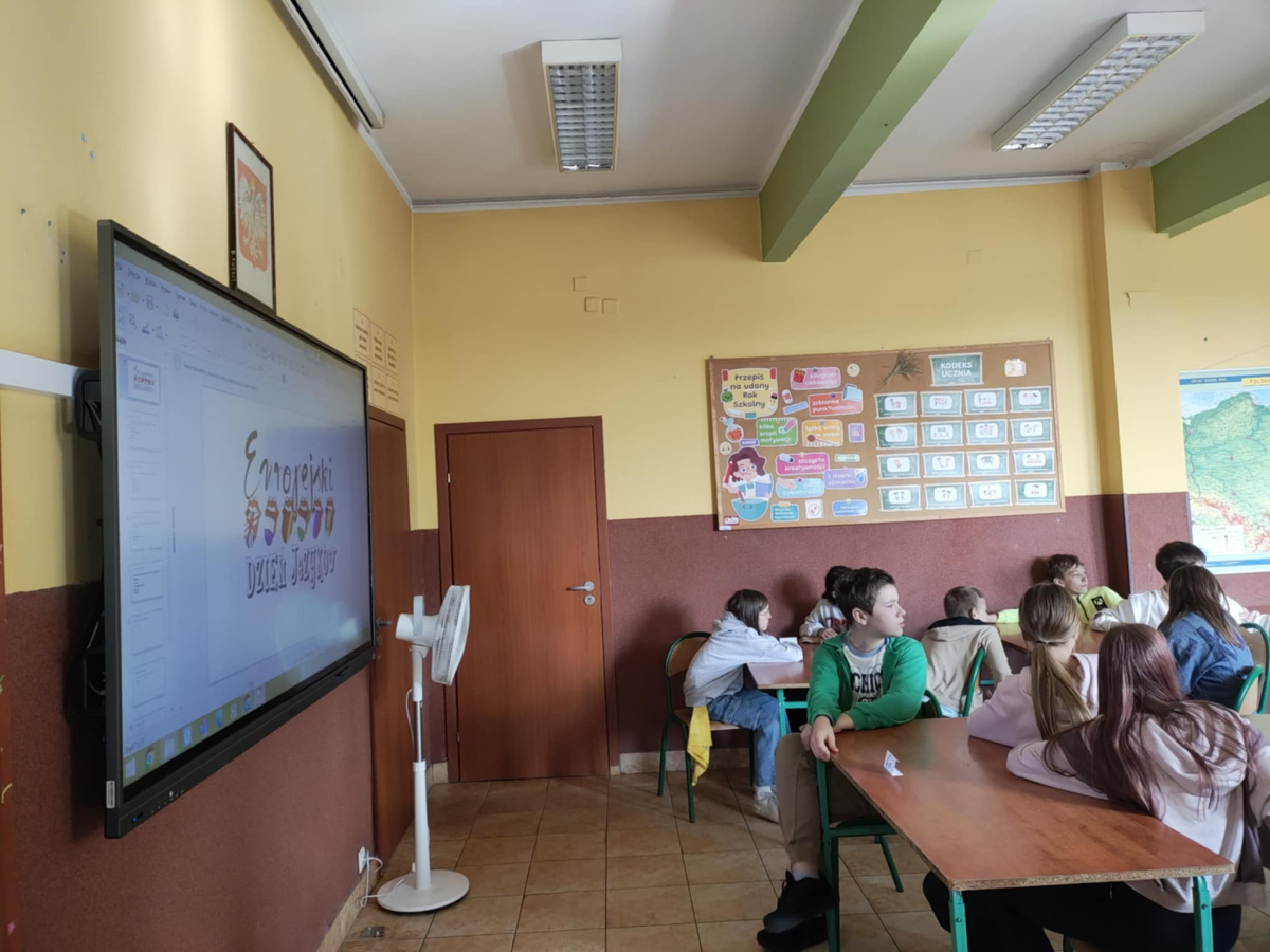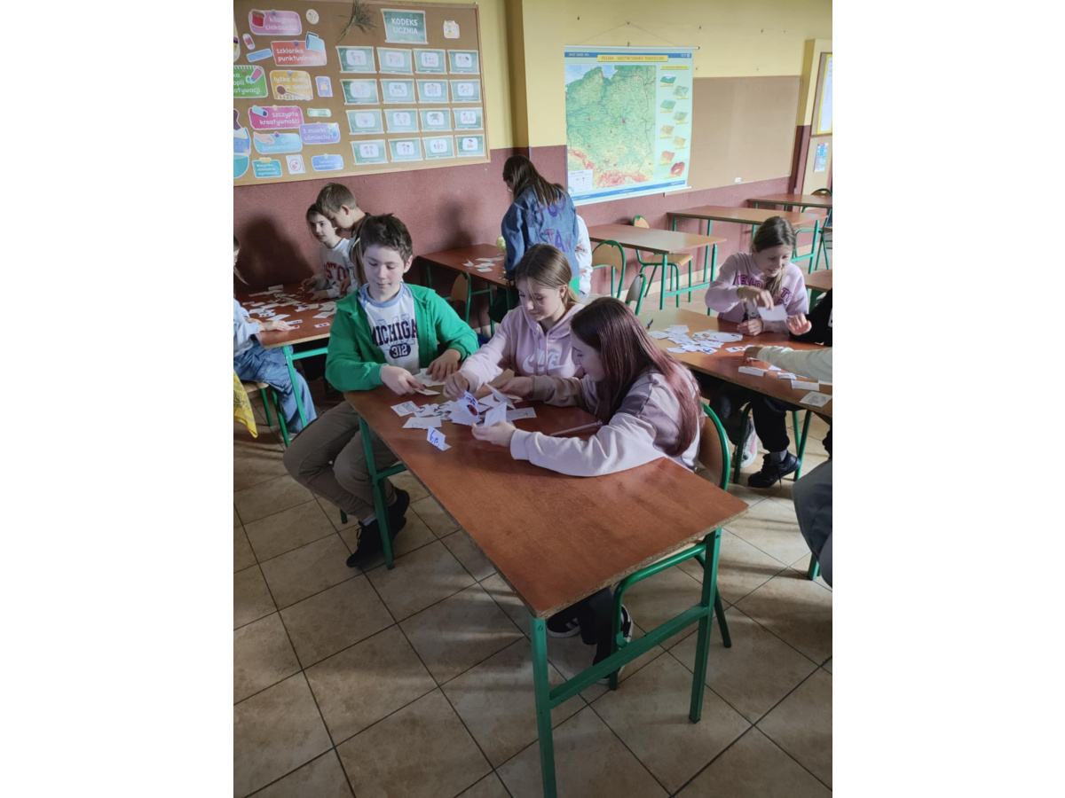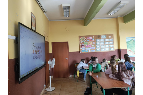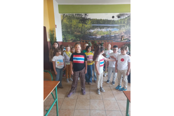 Obchody rozpoczęli uczniowie klasy 2a, którzy przygotowali wyjątkowy występ artystyczny. Zaśpiewali piosenkę w kilku językach oraz zaprezentowali powitania z różnych zakątków świata. Ich radość i zaangażowanie wprowadziły wszystkich w doskonały nastrój i zachęciły do dalszej wspólnej zabawy z językami. Następnie uczniowie klas 4–6 wzięli udział w quizie wiedzy o Europie. Musieli wykazać się znajomością map, charakterystycznych miejsc, symboli narodowych oraz powitań w językach różnych krajów. Emocje sięgały zenitu, a rywalizacja przebiegała w duchu dobrej zabawy i współpracy.