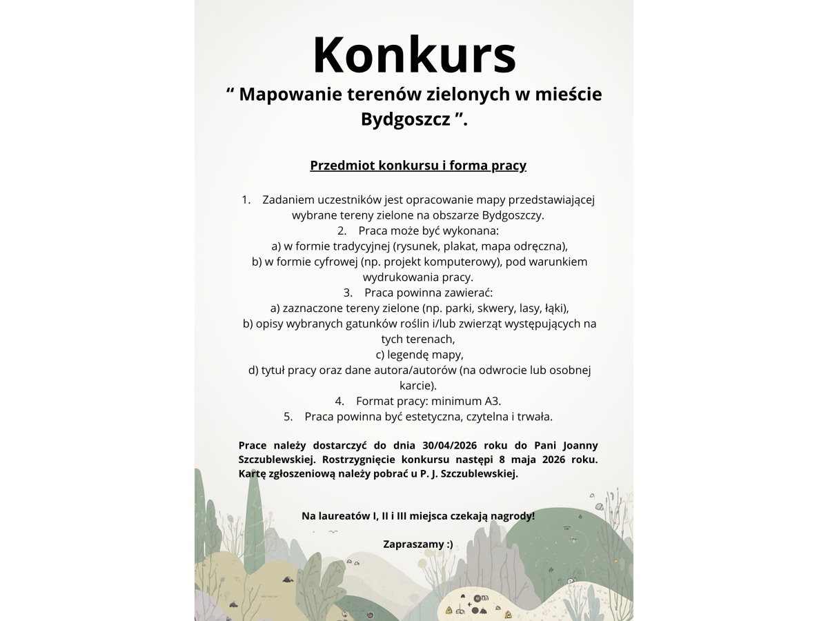 Międzyszkolny Konkurs "Mapowanie terenów zielonych w mieście Bydgoszcz"