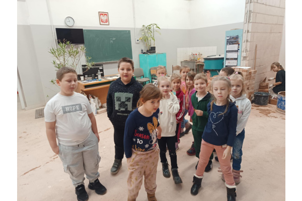 Ważnym punktem wizyty było również spotkanie z panią Marysią, która w przystępny i ciekawy sposób zaprezentowała kierunki kształcenia oferowane przez Technikum Budowlane. Dzieci mogły dowiedzieć się, czym zajmują się uczniowie tej szkoły oraz jak wygląda nauka w technikum.