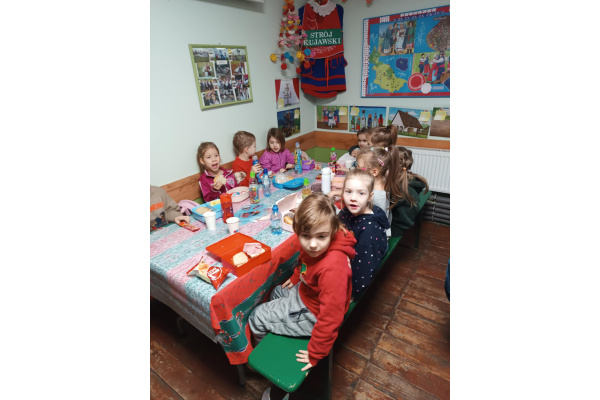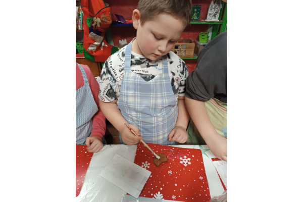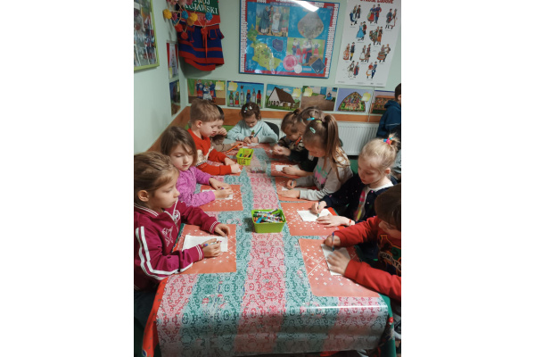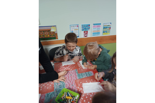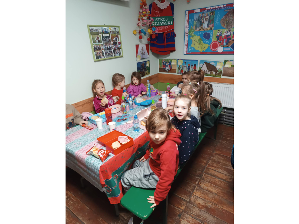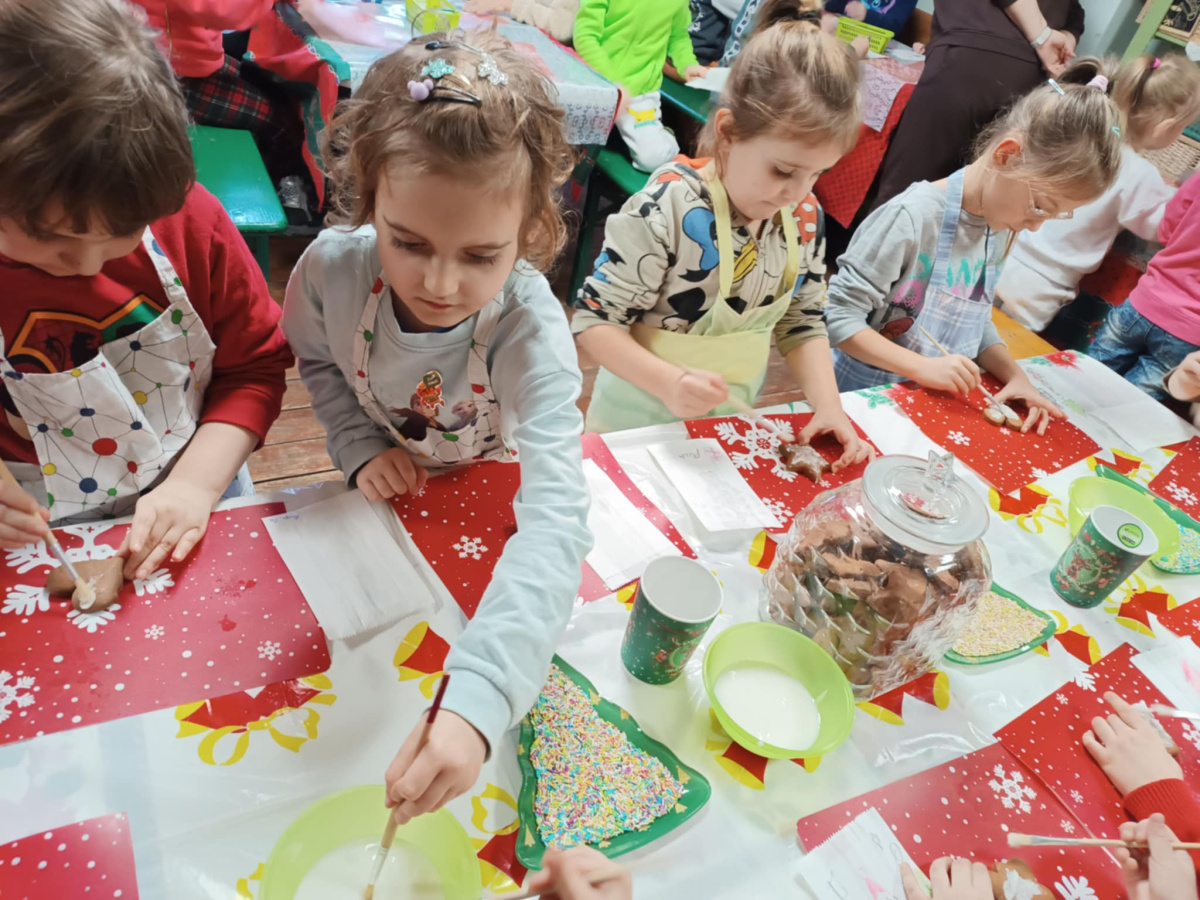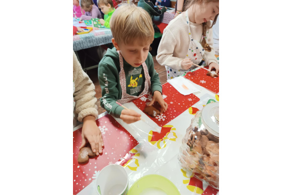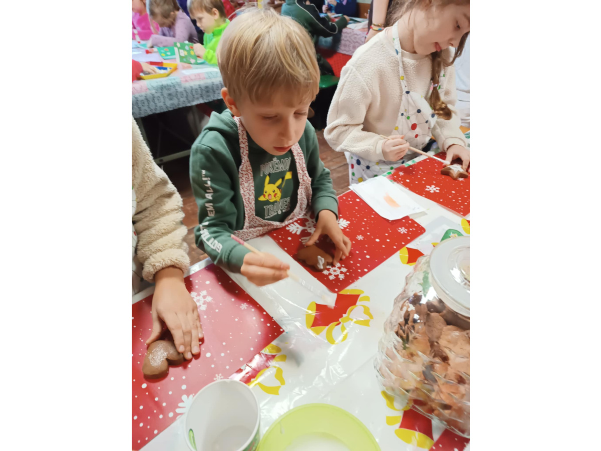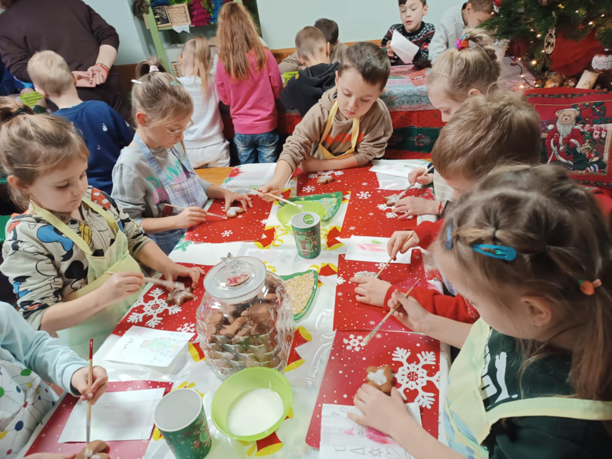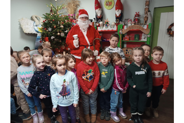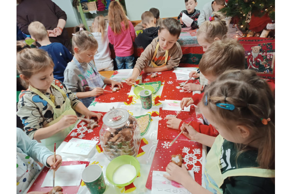9.12.2025 r. klasy 0a, 1a i 1c udały się do Kozielca na warsztaty świąteczne. Celem wycieczki było kultywowanie tradycji Świąt Bożego Narodzenia w naszej polskiej kulturze oraz przybliżenie dzieciom wiedzy na temat opowiadań związanych z tematyką bożonarodzeniową. Dzieci wykonały kartki świąteczne i ozdobiły pierniki. Odwiedziły również „Aniołowo", gdzie mogły zobaczyć różne anioły. Dzieci spotkały Świętego Mikołaja, który czekał na nich ze słodką niespodzianką. Uśmiechy na twarzach dzieci były dowodem na to, że wycieczka była udana.