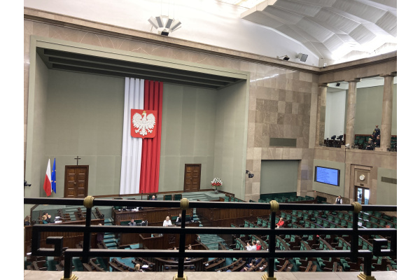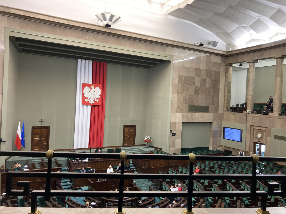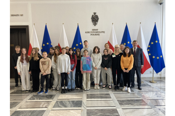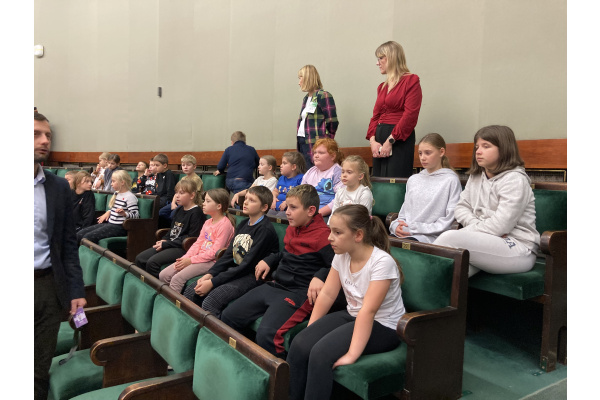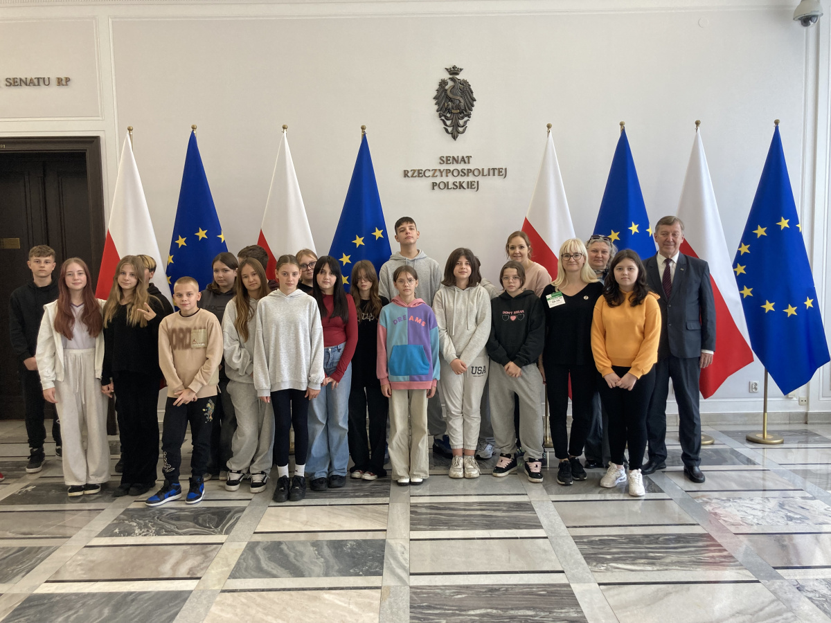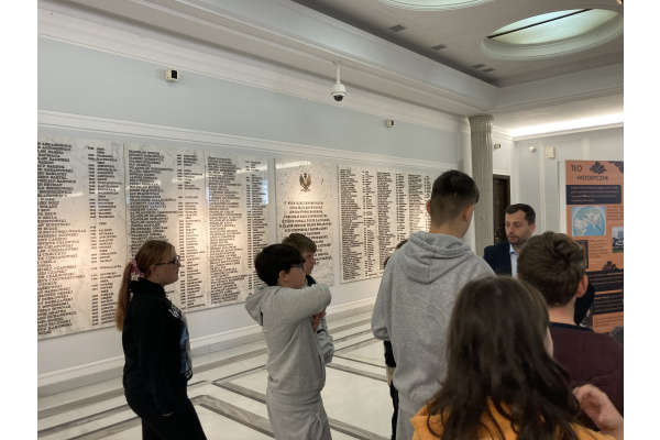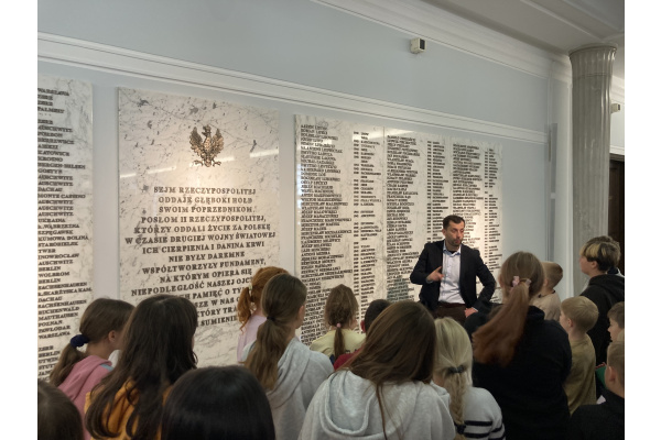 Następnie uczestnicy wycieczki udali się do Parlamentu Rzeczypospolitej Polskiej, dzieci miały niezwykłą okazję zwiedzić budynki Sejmu i Senatu wraz z przewodnikiem. Przysłuchiwały się również obradom Sejmu z galerii sejmowej, gdzie przywitał je Wicemarszałek Piotr Zgorzelski, oraz odwiedziły salę obrad Senatu. Potem przyszedł czas na zwiedzanie z przewodnikiem Stadionu Narodowego. Po długim i intensywnym dniu spędzonym w stolicy Polsk uczniowie wrócili do domu pełni pozytywnych przeżyć i zadowoleni z niezwykle udanej wycieczki.