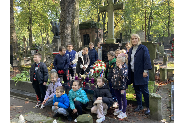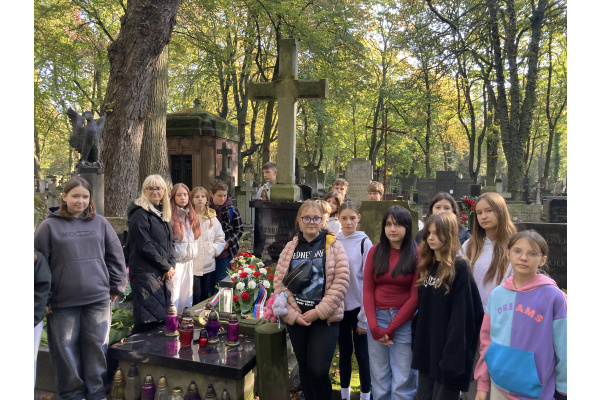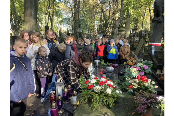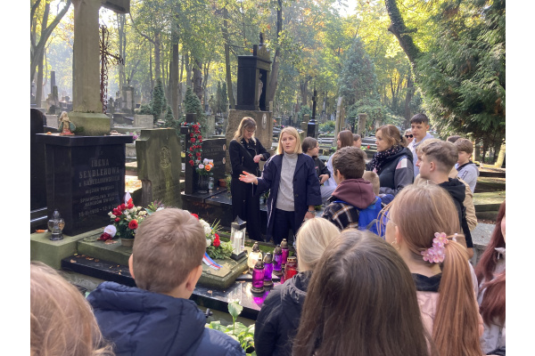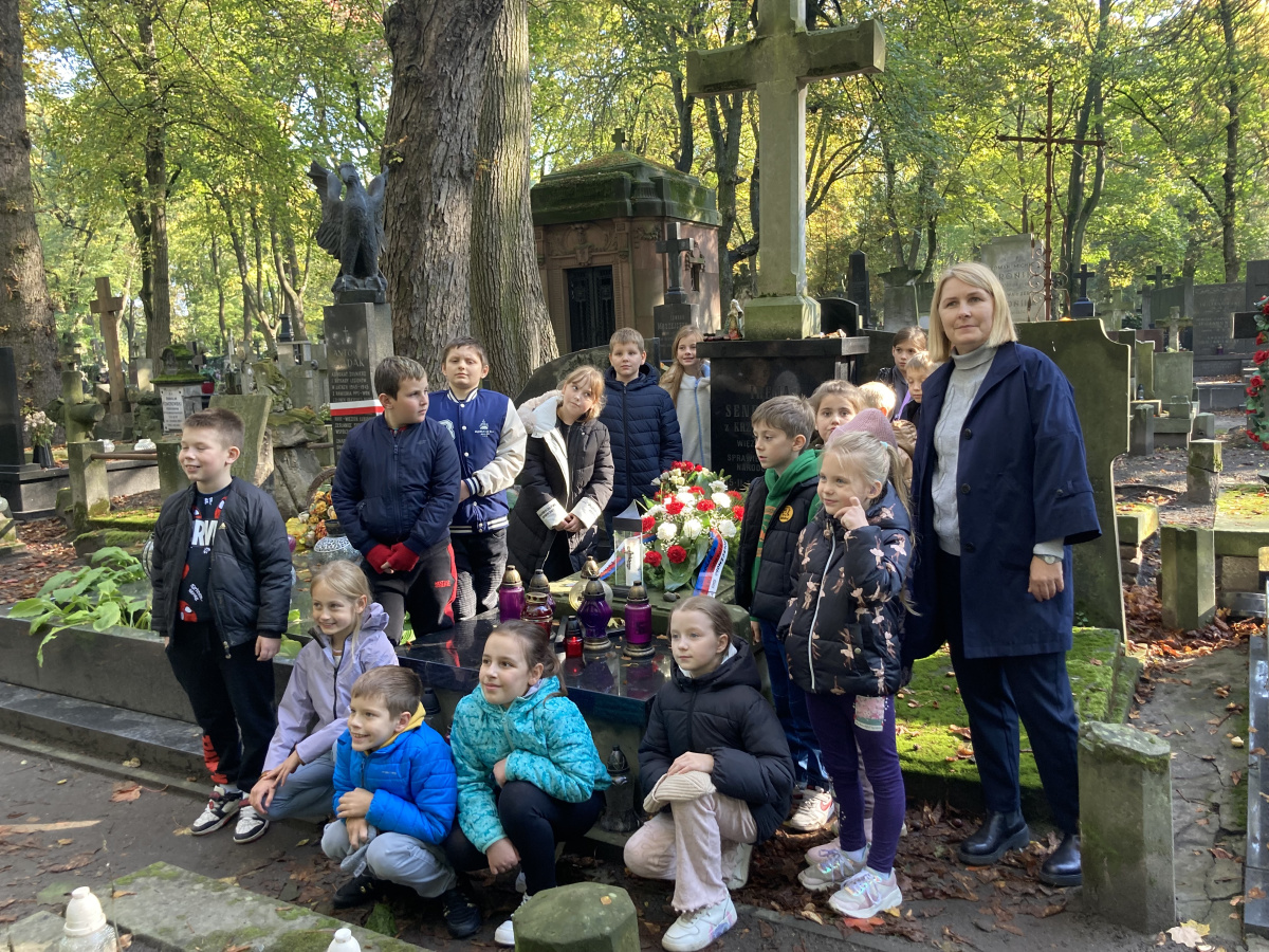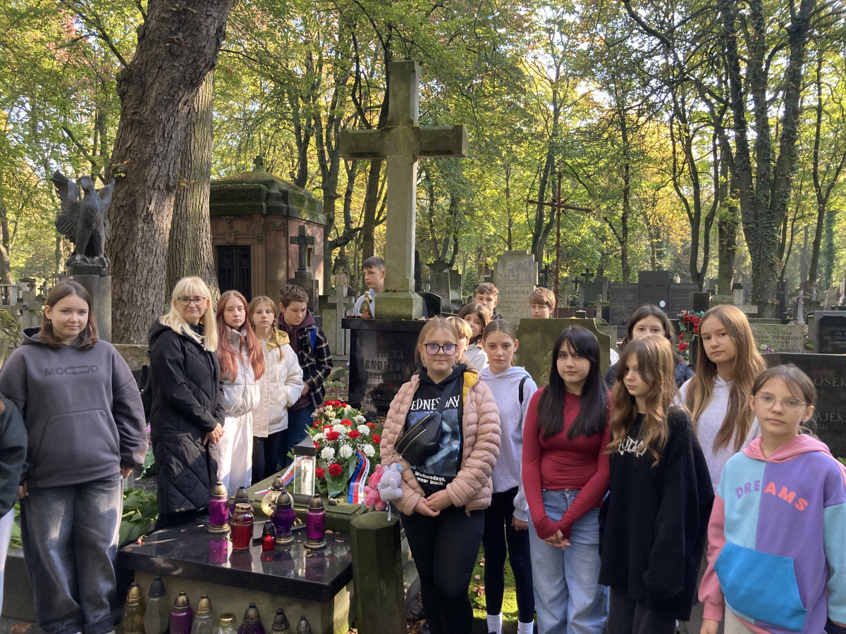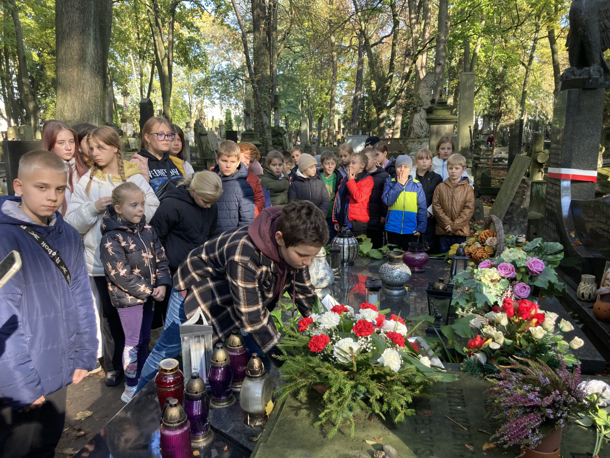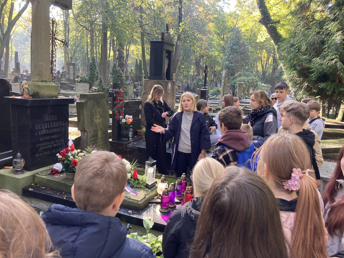 W dniu 8.10 klasa 3B i 6B wraz z wychowawcami oraz opiekunami pojechała na wycieczkę do Warszawy. Pierwszym punktem programu była wizyta na Cmentarzu Powązkowskim. Uczniowie i nauczyciele odwiedzili tam grób Patronki Szkoły. Złożyli na nim kwiaty, zapalili znicz oraz uczcili pamięć Ireny Sendlerowej minutą ciszy.